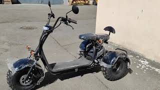 ✅ Основные технические характеристики: ✅ Диаметр колес – 8 дюймов. Мощность электродвигателя – 800 / 1000 / 1200 Вт. Тип аккумулятора – Li-ion (Литий-ионный) / SLA (Свинцово-кислотный) Аккумулятор – от 60 В 20 Ач до 60 В 30 Ач (на выбор). Пробег на одном заряде – до 65 км (зависит от выбранной АКБ). Тормозная система – барабанная. Максимальная нагрузка – 180 кг Вес – 105 кг