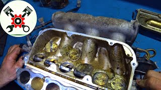 Renault Kangoo 2008р. 1.5dci К9К800 Проблема великий розхід масла. Перевіряю кількість картерних газів. Знімаю ГБЦ для дефектовки. Виявив пересохшу мембрану ВКГ. На пошнях великий масляний нагар, стан гільз чудовий хон видно. Кулачки на розпредвалі зношені, стаканчики також зношені. Сальники клапанів тверді і з незрозумілим нагаром. Клапана чорні. Посадочні місця для сухарів розбиті. Пересохший і зломаний корпус термостата. Дістаю поршня для перевірки стану маслозємних кілець. Цеп маслонасоса розтягнута. Поршневі кільця рухомі, маслозємні закоксовані. Вкладиші подерті. Зазор в поршневих кільцях збільшений. Зазор між шестернями масляного насосу також збільшений, насос потрібно міняти. #RenaultKangoo #Renault #Kangoo #dci #РеноКенго #Рено #ЖорМасла #РозхідМасла #ЗтертийРозпредвал #авторемонт #двигун #автомобіль #діагностика #engine #carrepair